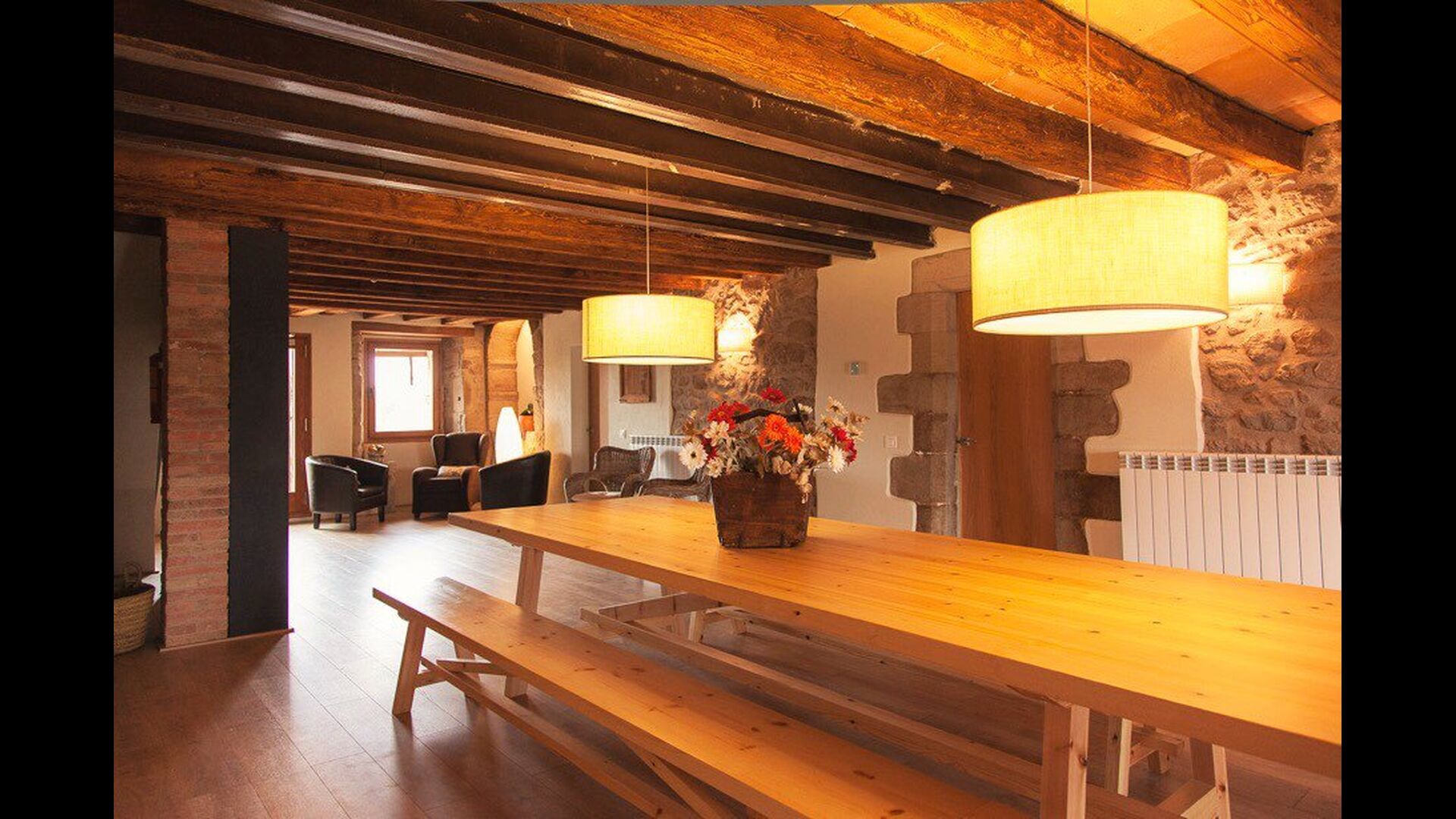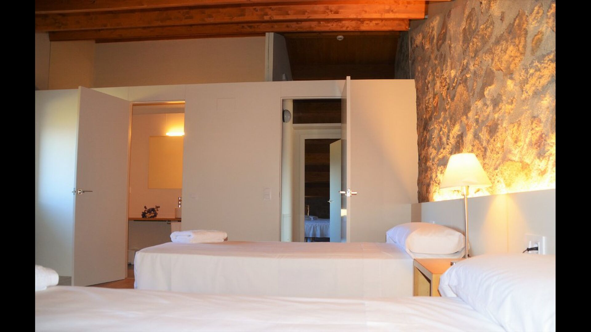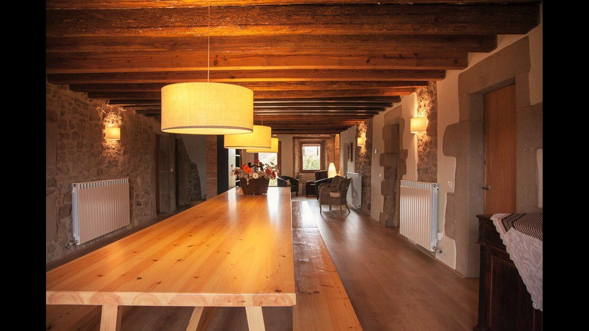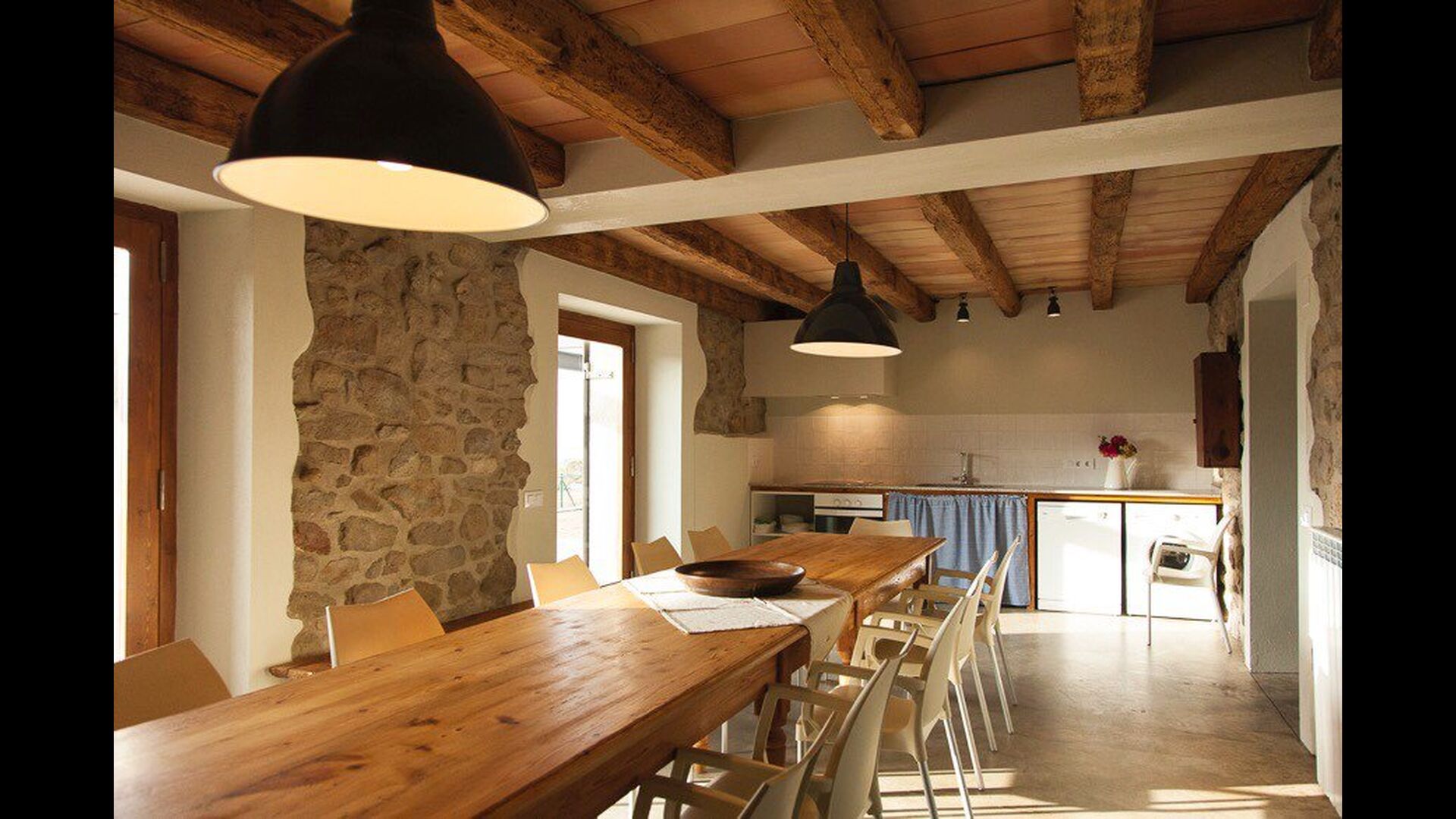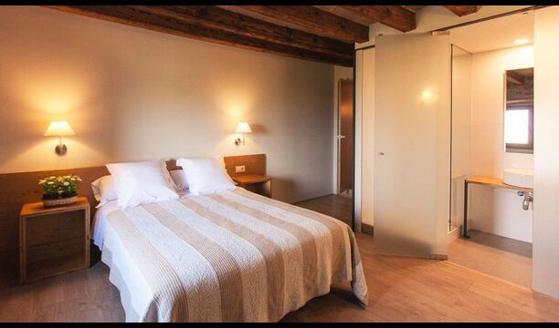 Die erste Etage des Hauses hat auch einen Gemeinschaftsraum mit Essecke und einem reichhaltigen Designer-Küche mit Blick über die Landschaft und den Pool. Es gibt 10 sehr schön ausgestattete Zimmer in Masia del Cerdeña. Ein im Erdgeschoss, sechs im ersten Stock und drei im zweiten Stock. Die Zimmer sind wunderschön eingerichtet und acht von ihnen sind mit eigenen. Es gibt insgesamt 10 Bäder.