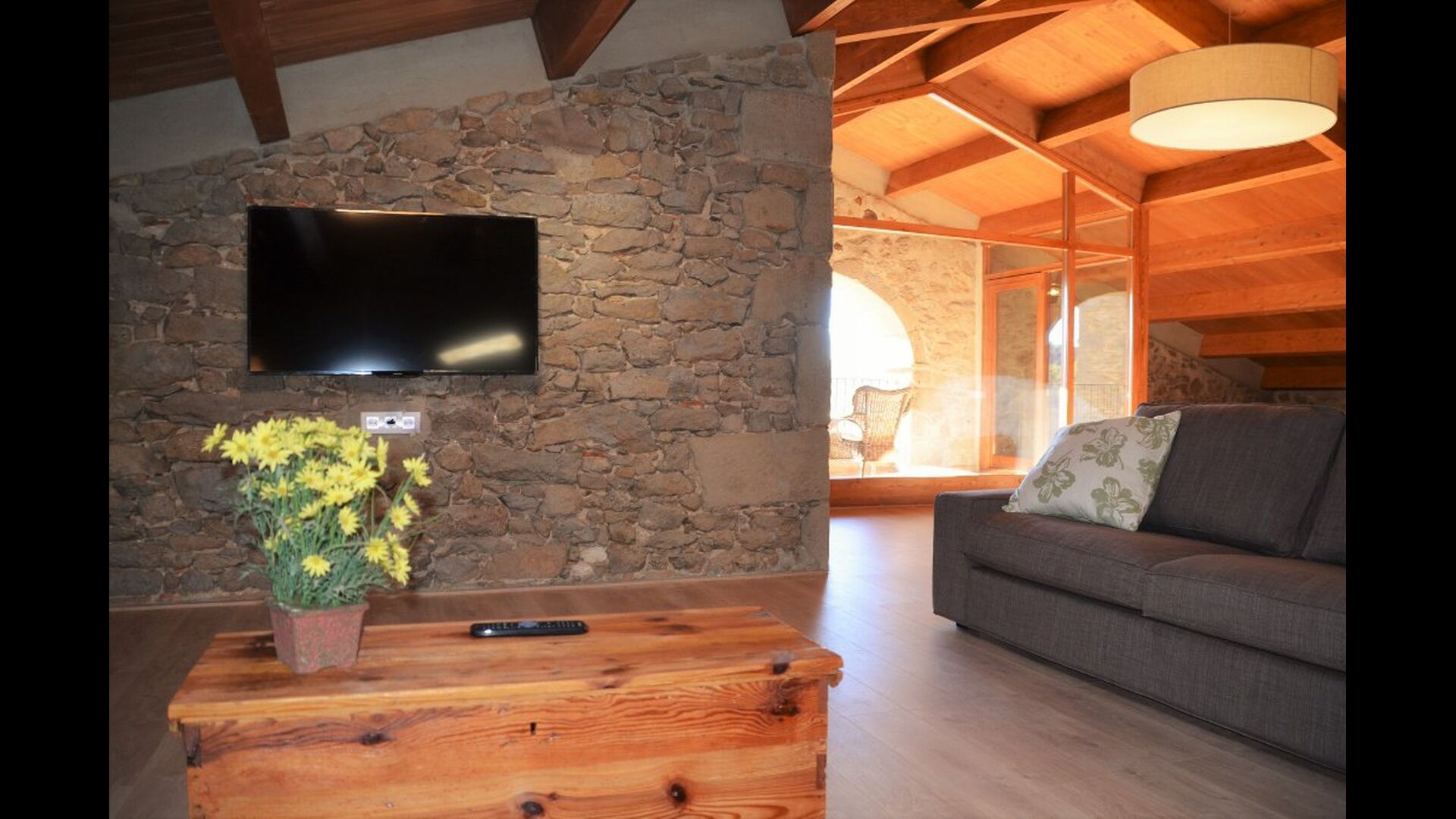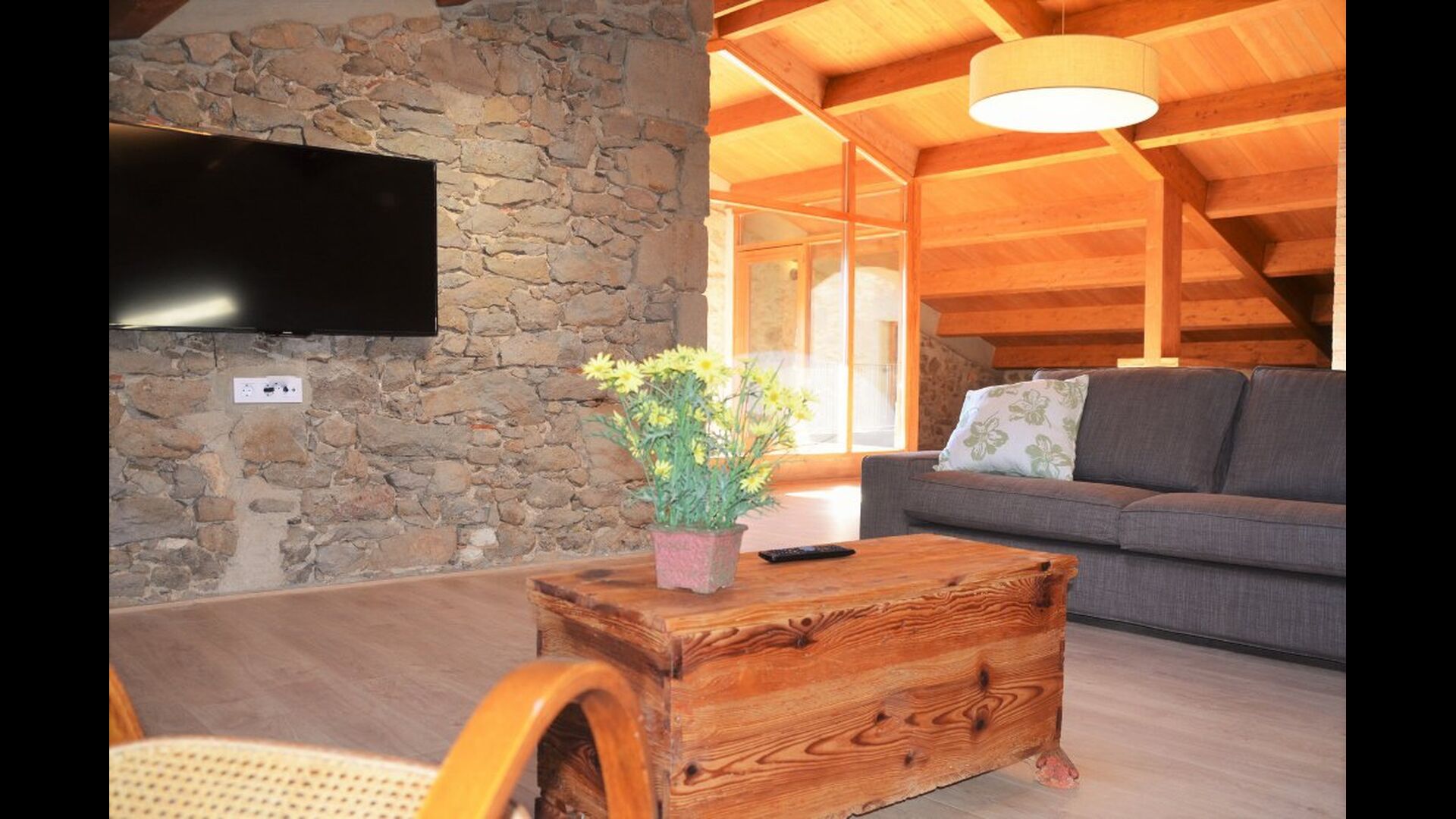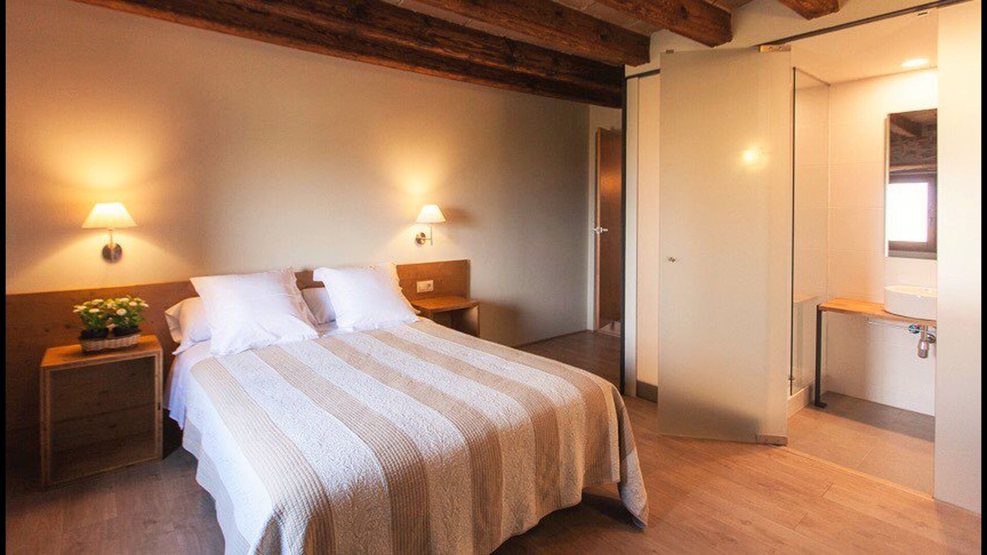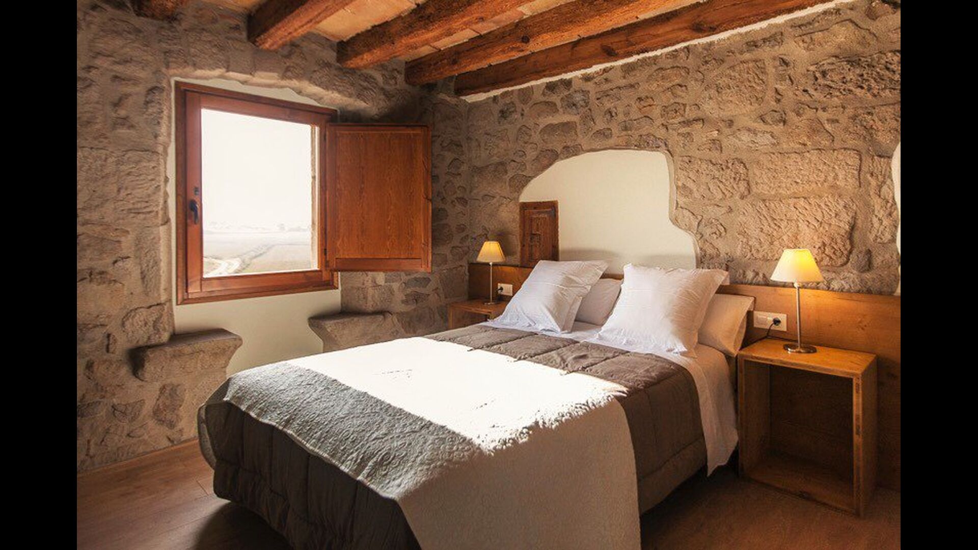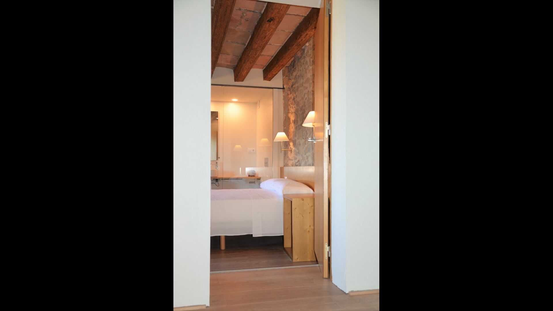 Die erste Etage des Hauses hat auch einen Gemeinschaftsraum mit Essecke und einem reichhaltigen Designer-Küche mit Blick über die Landschaft und den Pool. Es gibt 10 sehr schön ausgestattete Zimmer in Masia del Cerdeña. Ein im Erdgeschoss, sechs im ersten Stock und drei im zweiten Stock. Die Zimmer sind wunderschön eingerichtet und acht von ihnen sind mit eigenen. Es gibt insgesamt 10 Bäder.