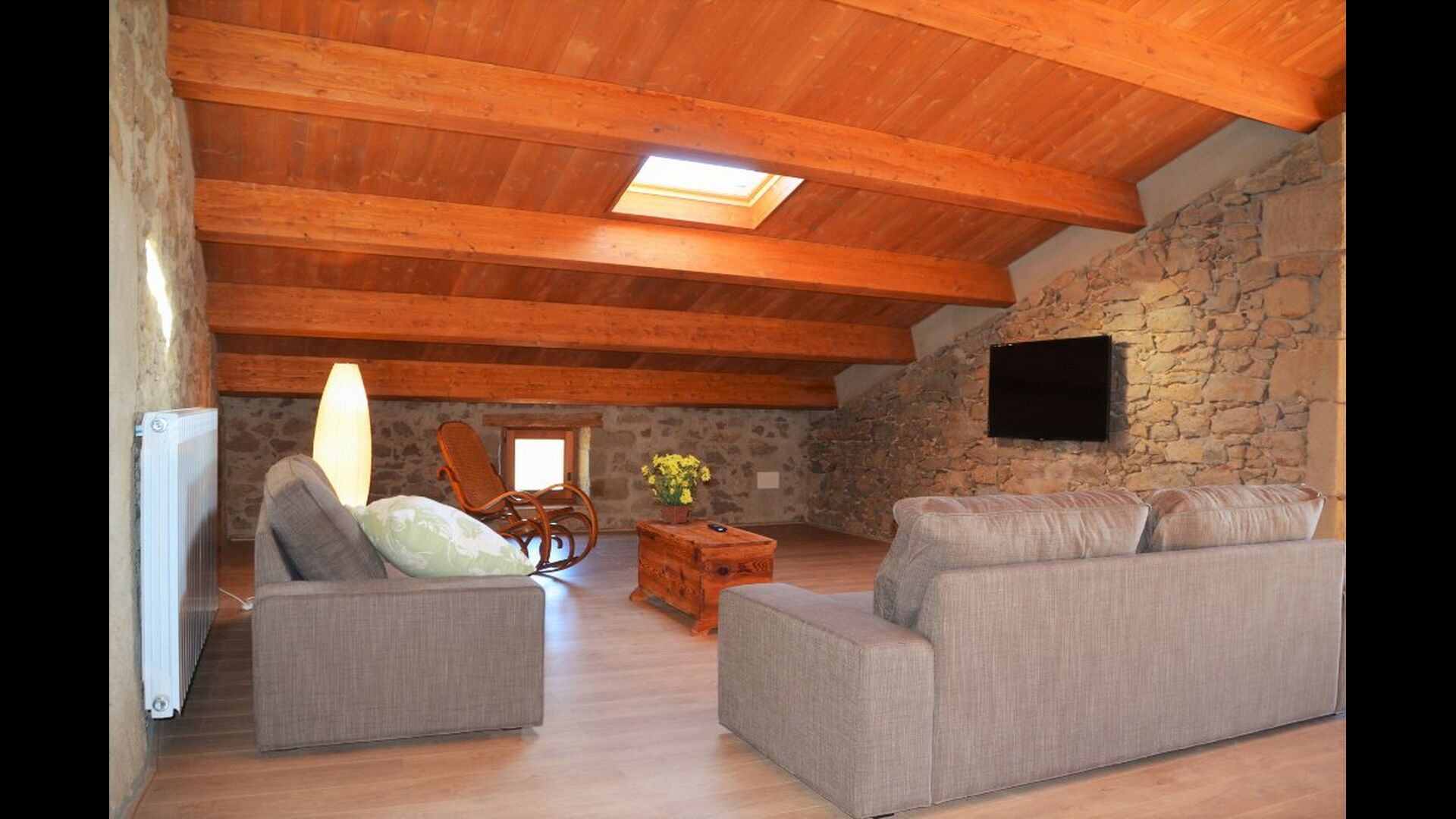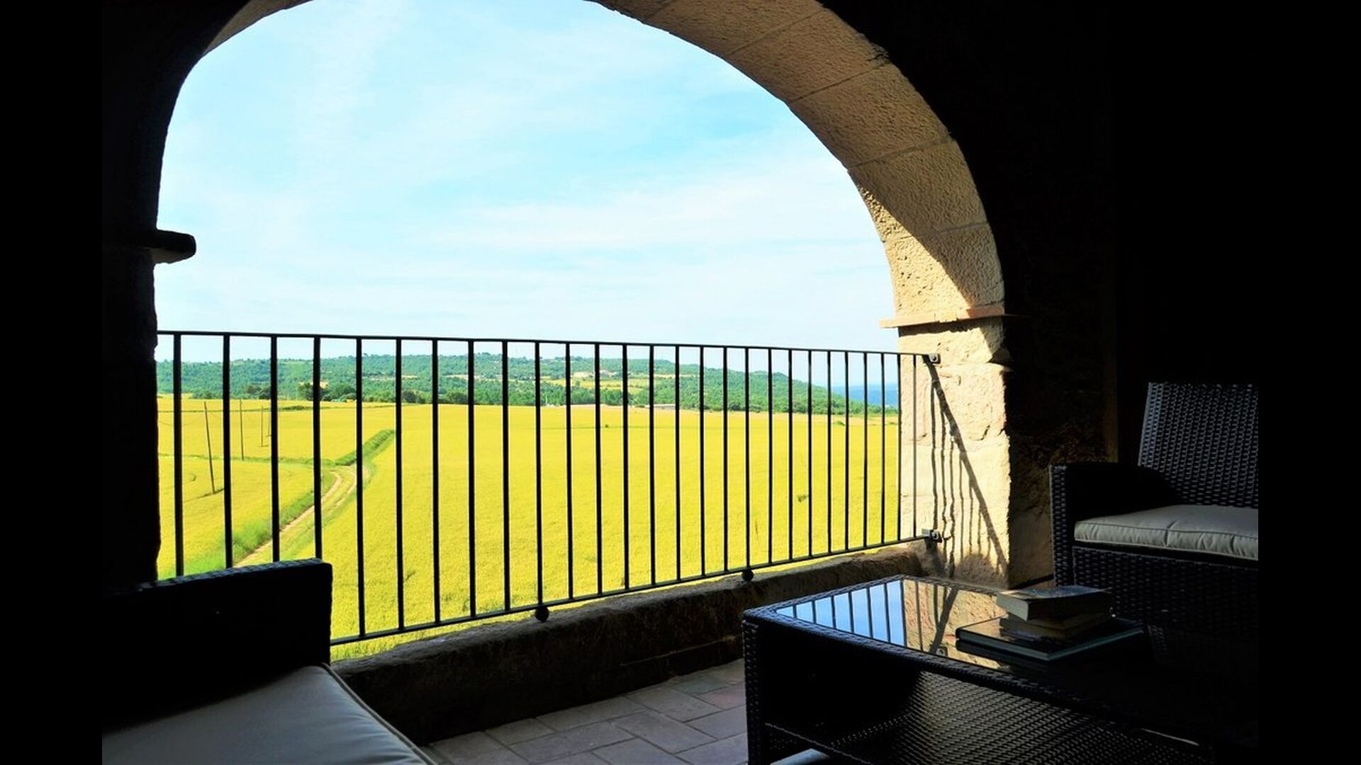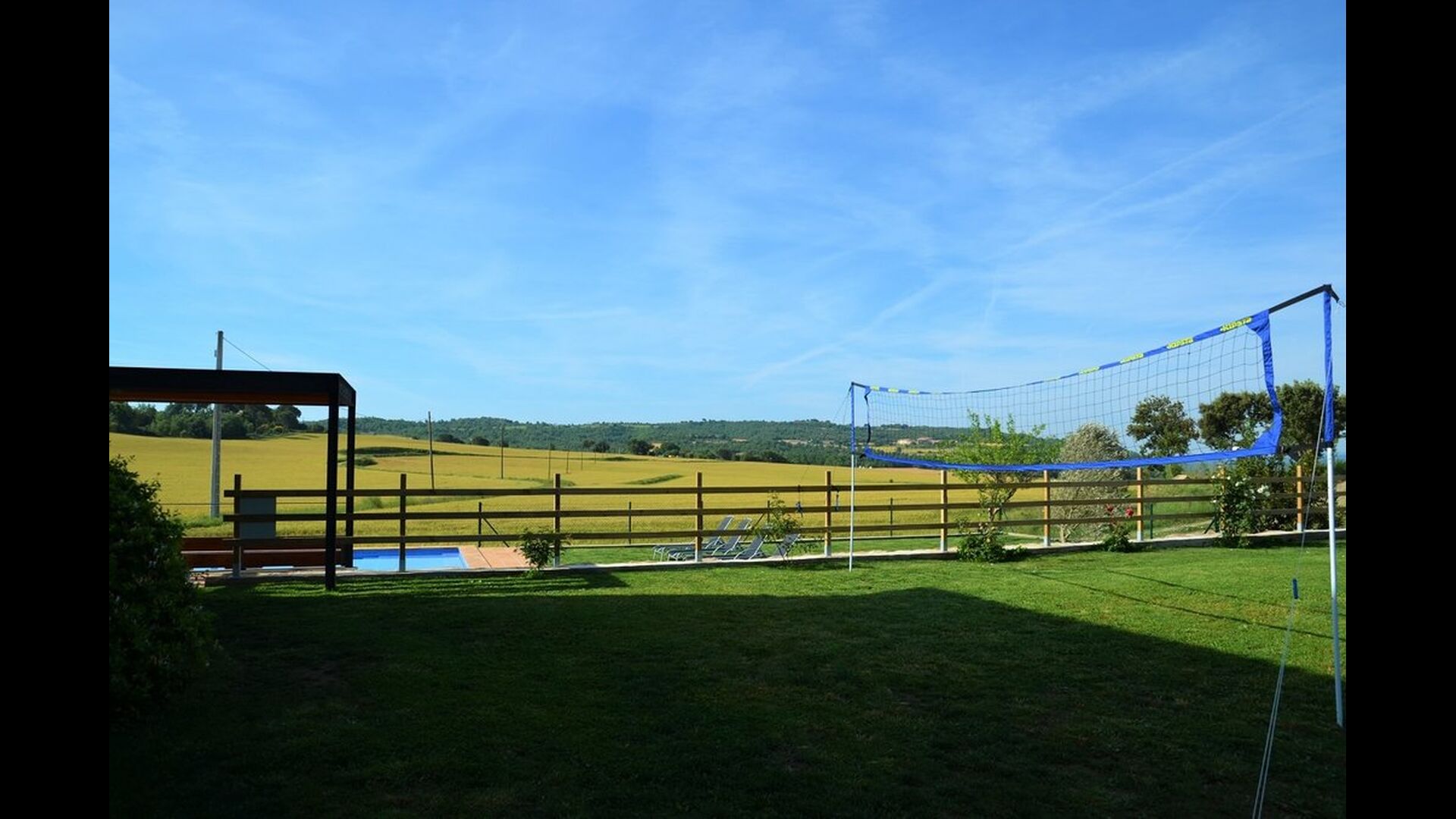 Im Garten gibt es zwei Entspannungsbereiche mit bequemen Aussensofas. Der eine am Pool, wo es auch eine Menge Liegestühle gibt, und der andere auf einer erhöhten Terrasse mit einem fantastischen Blick über die schöne Landschaft. Das Ferienhaus Masia del Cerdaña ist in der Tat auf einem Hügel gelegen mit einer wunderbaren Aussicht - fast den ganzen Weg rund.