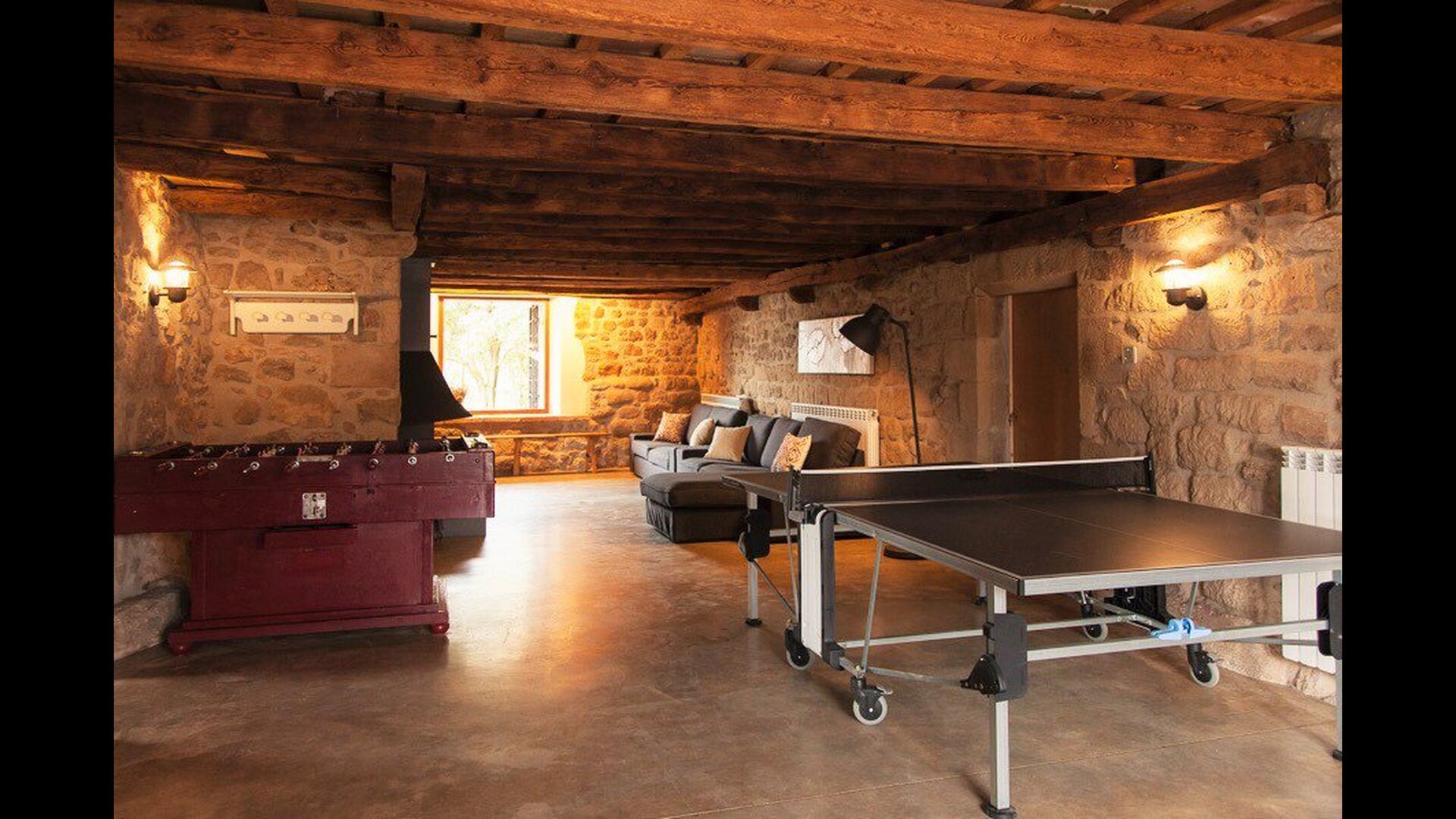 Der Swimmingpool ist sehr schön und groß (66m2), so es gibt Platz für die vielen Gäste im Haus. Es hat einen flachen Bereich und einen tieferen Teil, die durch Treppen verbunden sind. Außerdem gibt es einen Fußballplatz und ein Basketballfeld, auf dem sowohl Erwachsene als auch Kinder ihre Energie verbrennen können und in Innenräumen gibt es Tischfußball, Tischtennis und einen kleineren Innenpool, so es gibt eine Menge von Aktivitäten.