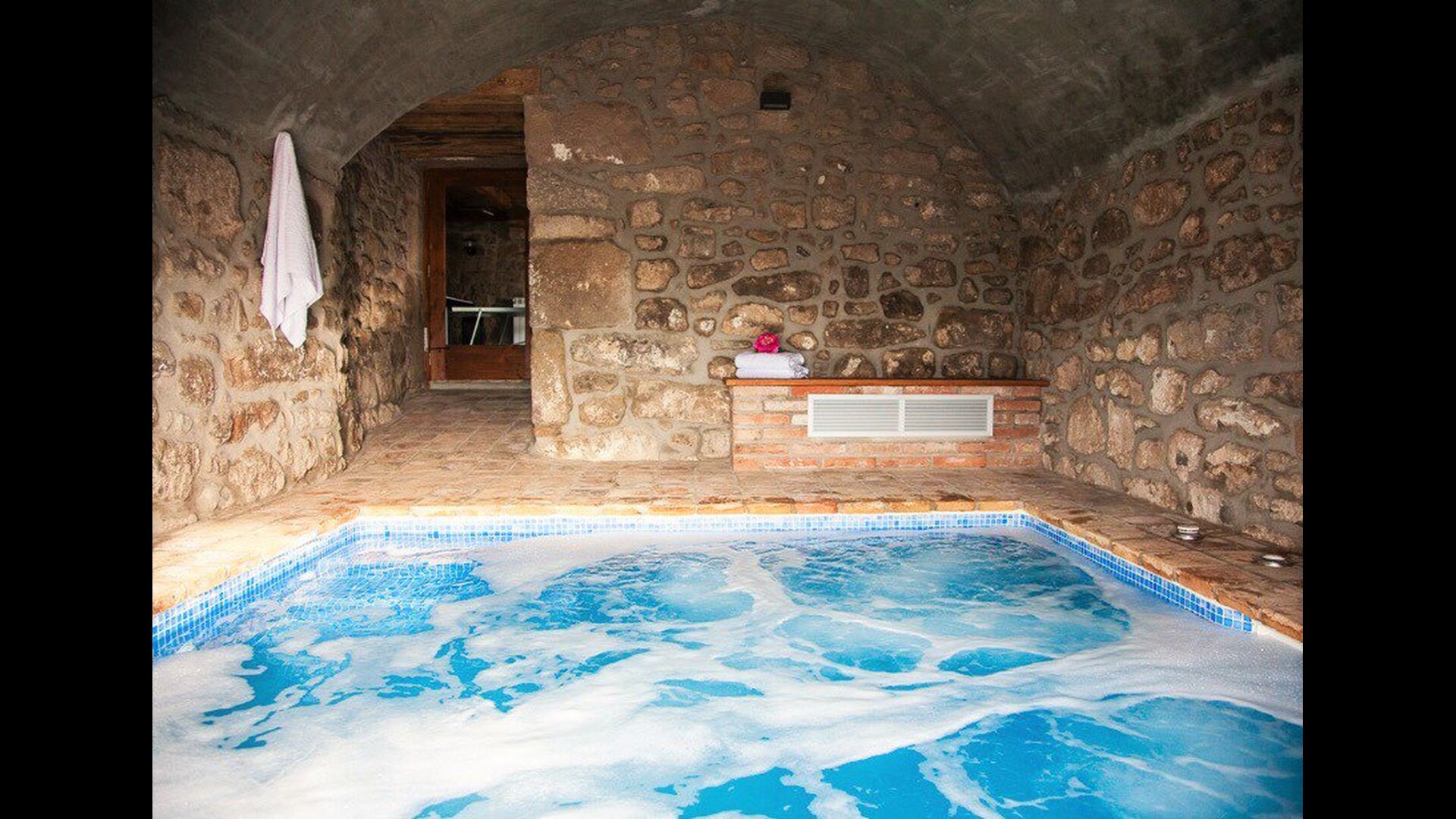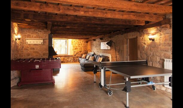 Nicht nur die Außenanlagen sind mit großer Sorgfalt organisiert das gleiche ist der Fall drinnen in Masia del Cerdaña, die Platz für 23 Gäste hat. Das Erdgeschoss des Hauses ist um einen gemütlichen und großzügigen Gemeinschaftsraum mit Sofas und Flachbild-TV, wo Sie sich entspannen können, zentriert. Direkt neben diesem finden Sie einen Innenpool mit Spa-Funktion (3x3 m) Es gibt Treppe in den Pool und Bänke, so dass Sie sich entspannen und Wellness in schönen und privaten Umgebungen genießen können.