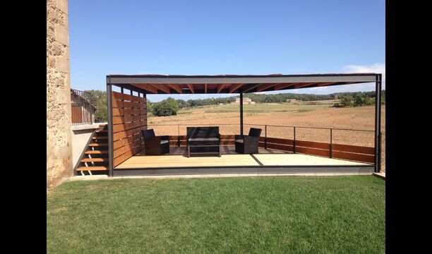In der Gestaltung des Außenbereichs hat man gründlich überlegt, wie man die Sommerferien optimieren kann. Von der überdachten Terrasse haben Sie direkt Blick auf den Pool, so dass Sie ruhig sitzen können und ein Auge auf die Kinder, die Spaß im Pool haben, und Sie können ein Glas Cava im Schatten genießen oder in den späten Abendstunden entspannen. Es gibt sogar zwei Küchen. Eine Sommerküche mit direktem Zugang zum Pool, so dass es einfach ist, den Sommerabendessen vorzubereiten, kühle Getränke zu holen und das Geschirr hin und zurück zu bringen, ohne in die Küche im ersten Stock zu laufen. Das Essen kann auch auf dem Grillplatz im Garten vorbereitet werden. Dieses Detail macht einfach die Ferien viel bequemer, und wir zweifeln nicht daran dass die ansonsten perfekte Küche im ersten Stock in der Sommerzeit kaum verwendet wird.