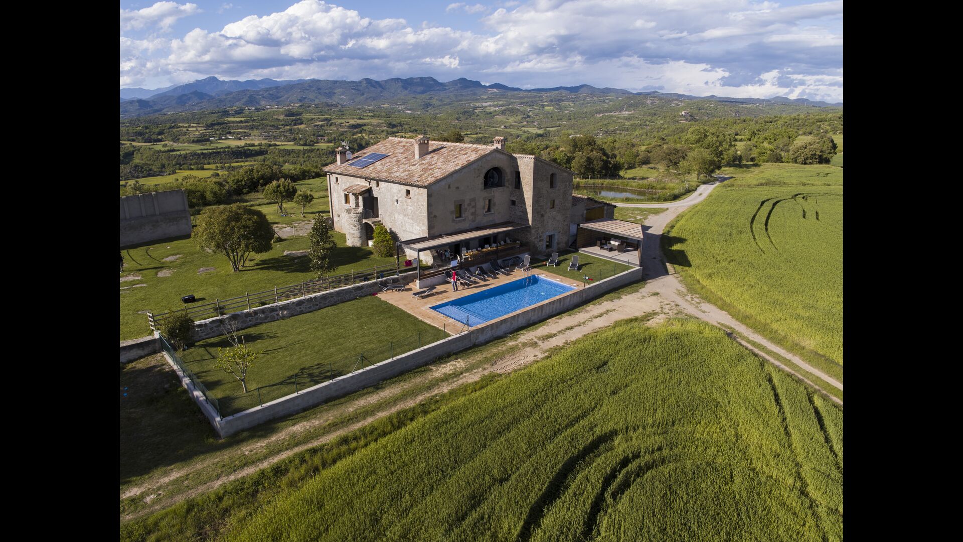 Masia del Cerdaña ist ein völlig neu renoviertes Ferienhaus von hohem Standard mit Platz für 23 Gäste. Ohne Nachbarn gelegen, ist es für einen ruhigen Urlaub in schöner Umgebung die ideale Stelle. Außen finden Sie einen wunderschönen Poolbereich, Entspannungsbereich und eine große überdachte Terrasse mit einem langen Tisch - ideal für Mittagessen und für die späten Abendstunden.