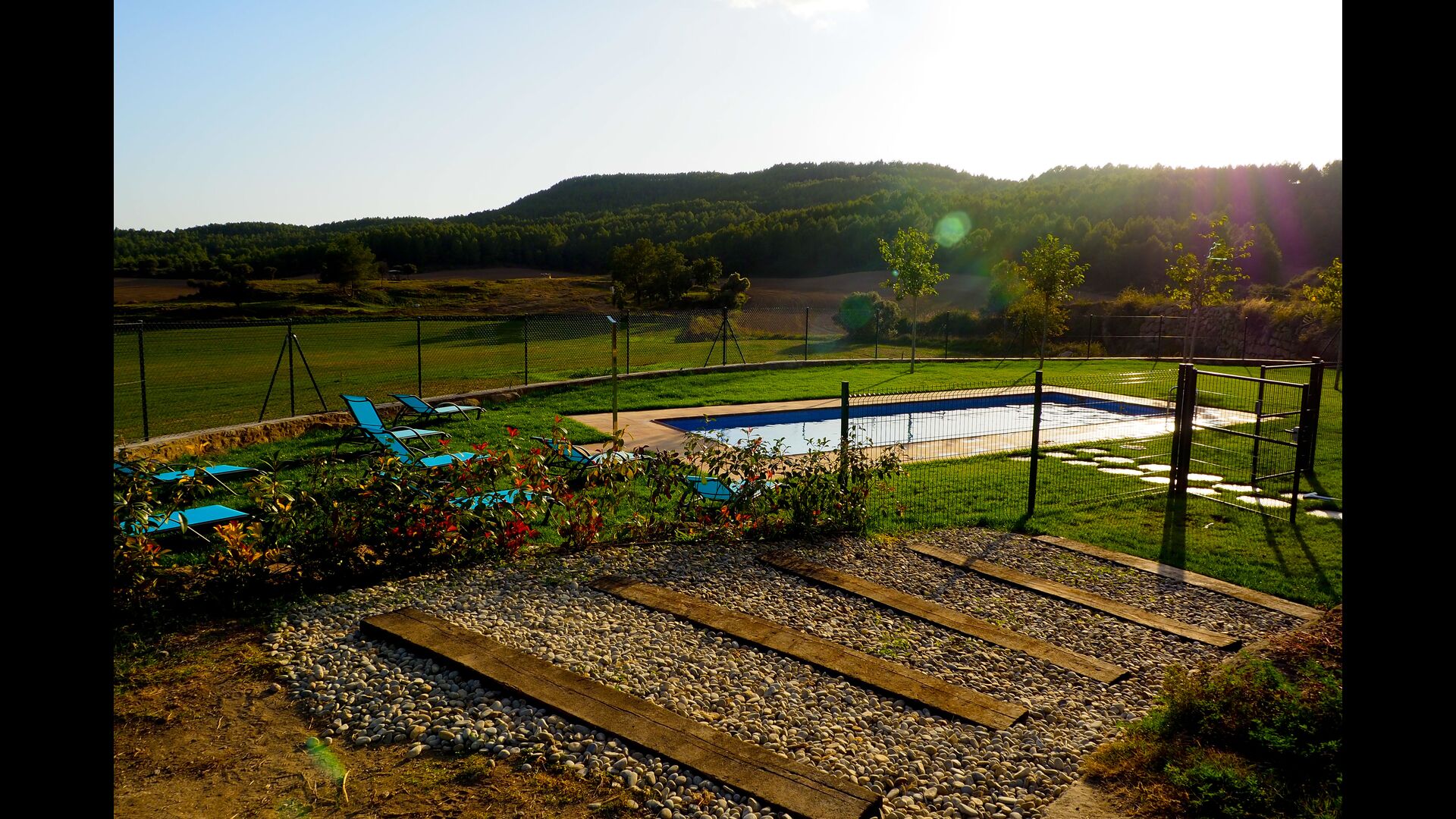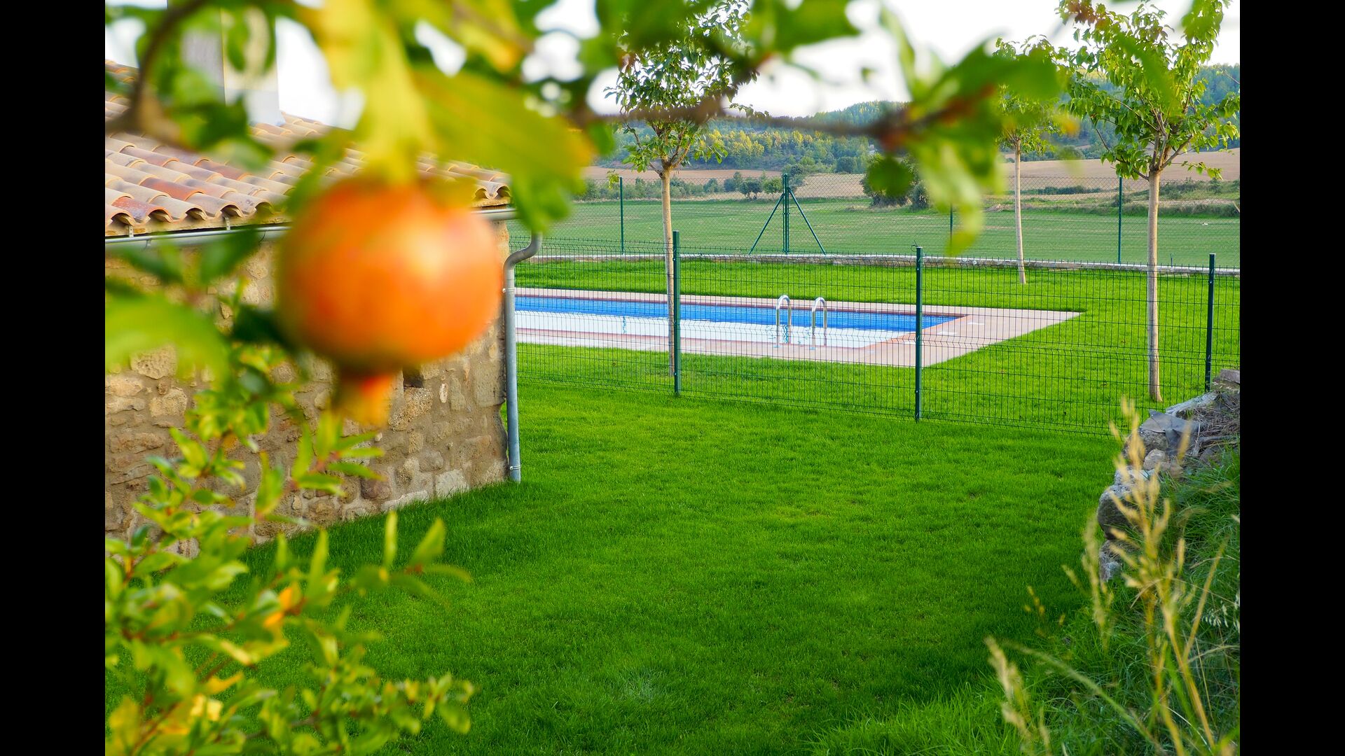 Der Poolbereich befindet sich direkt neben dem Haus und ist sehr wahrscheinlich ein beliebter Ort! Der Pool hat eine Fläche von 11 × 4 Metern und ist zur Sicherheit der jüngsten eingezäunt. Um den Pool herum befindet sich der 500 Quadratmeter große Garten mit einem schattigen Bereich und Liegestühlen zum Sonnenbaden - der perfekte Ort, um sich bei einem Lieblingsbuch oder einem Glas Wein aus der Region zu entspannen. Eine gepflasterte Terrasse mit Ess- und Grillbereich im Freien befindet sich neben dem Pool.