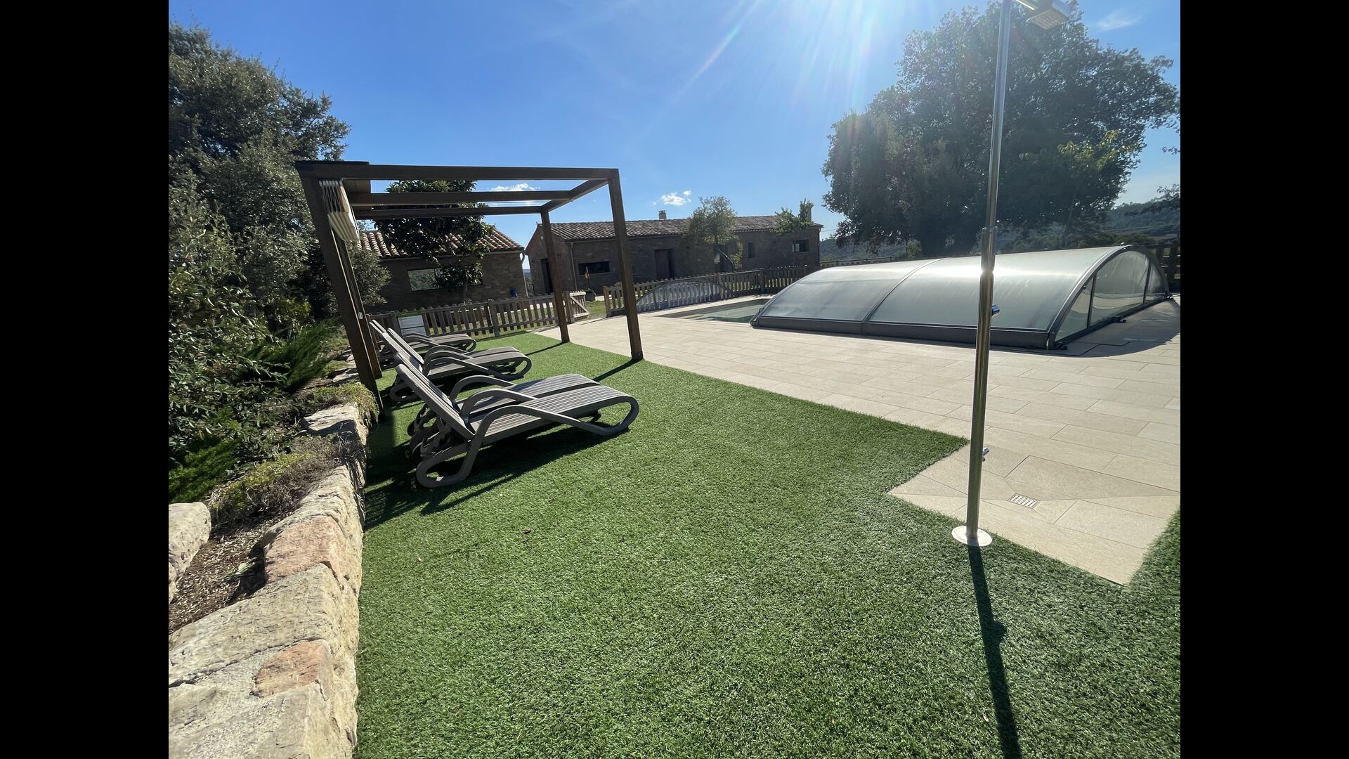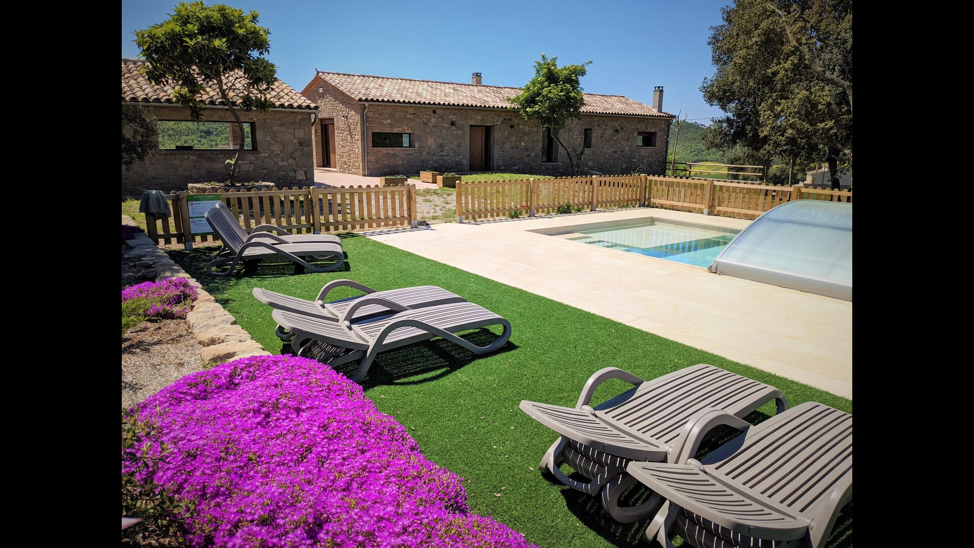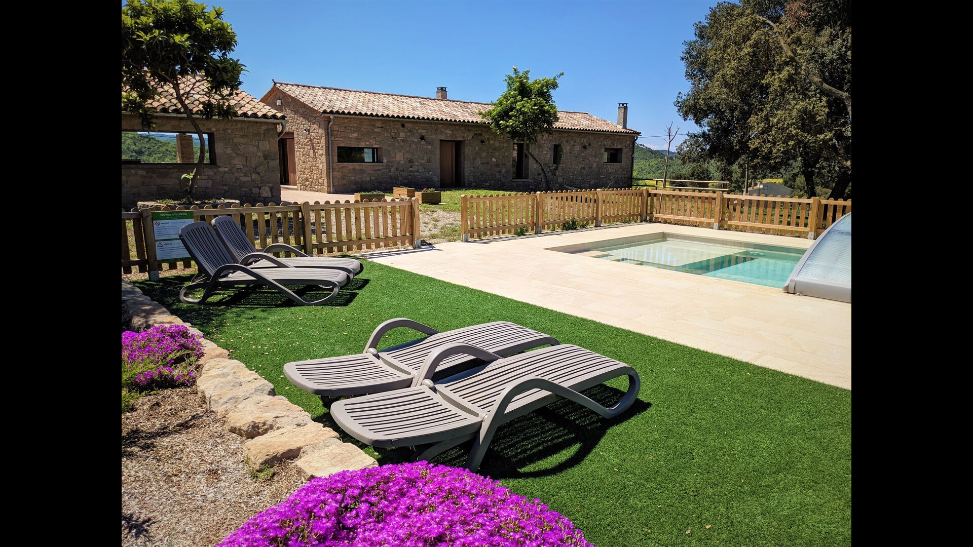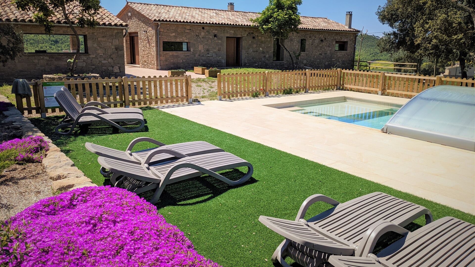 Kommen Sie und entspannen Sie sich in luxuriösen Höhen im Masia Escudia. In den Hügeln hinter der Regionalhauptstadt Manresa gelegen, finden Sie ein wunderschönes, komplett und neu renoviertes Ferienhaus mit Qualität bis ins Detail . Vom Poolbereich aus haben Sie einen 360-Grad-Blick auf die Berge in alle Richtungen und keine Nachbarn in der Nähe.