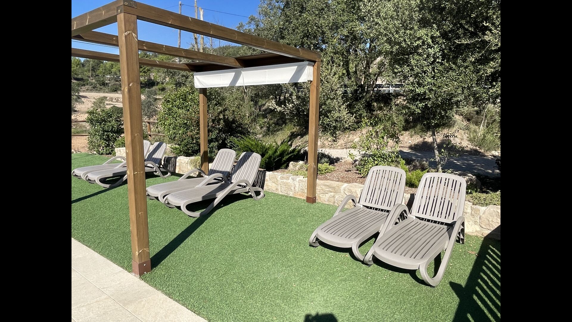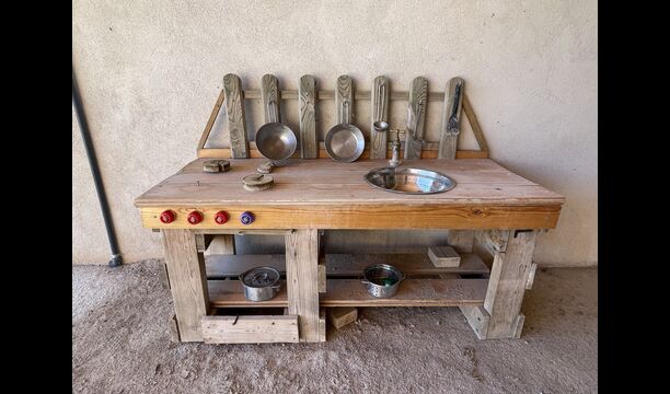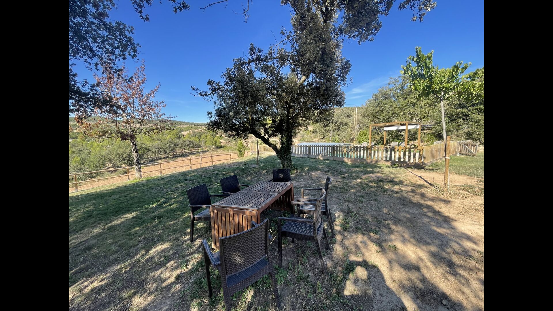 Direkt neben dem Pool Im Bereich gibt es einen Grastisch mit Stühlen, falls Eltern etwas abseits des Bereichs sitzen möchten, aber noch ihre Kinder haben im Blick und in der Nähe.